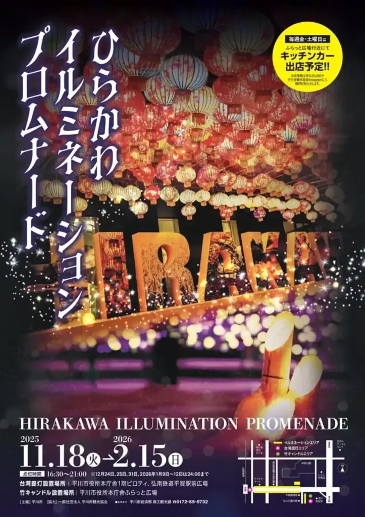ひらかわイルミネーションプロムナード2025|台湾提灯×竹キャンドル×バブルドームが彩る冬の光の回廊|青森県平川市