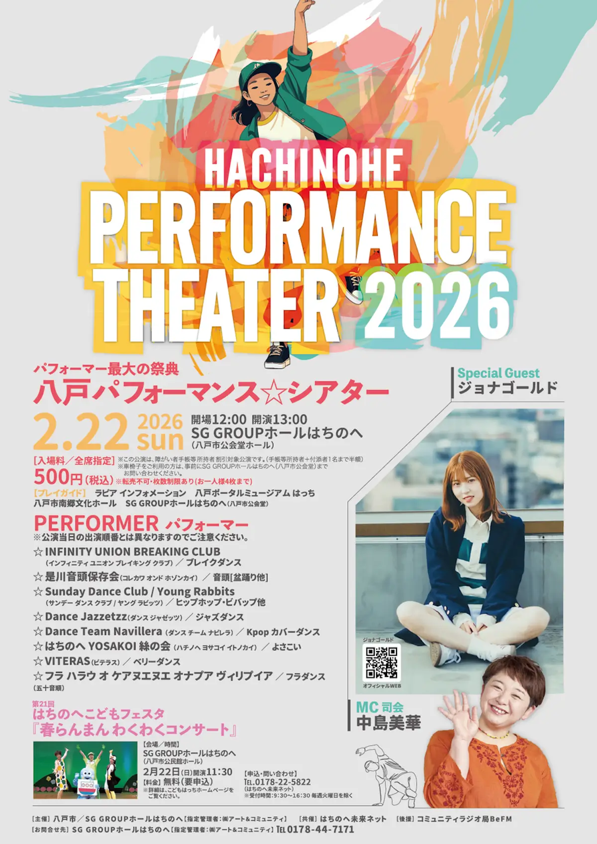 2026年2月22日(日)、SG GROUPホールはちのへ(八戸市公会堂ホール)にて「八戸パフォーマンス☆シアター2026」が開催されます。