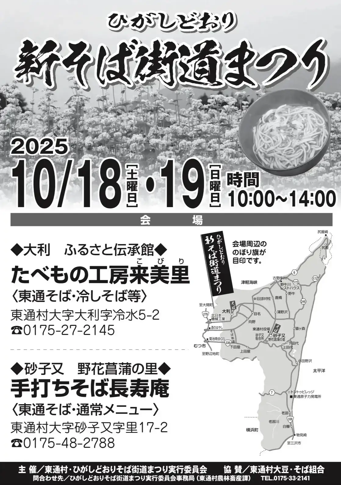 青森県東通村で「ひがしどおり新そば街道まつり」が、2025年10月18日(土)・19日(日)の2日間開催されます。