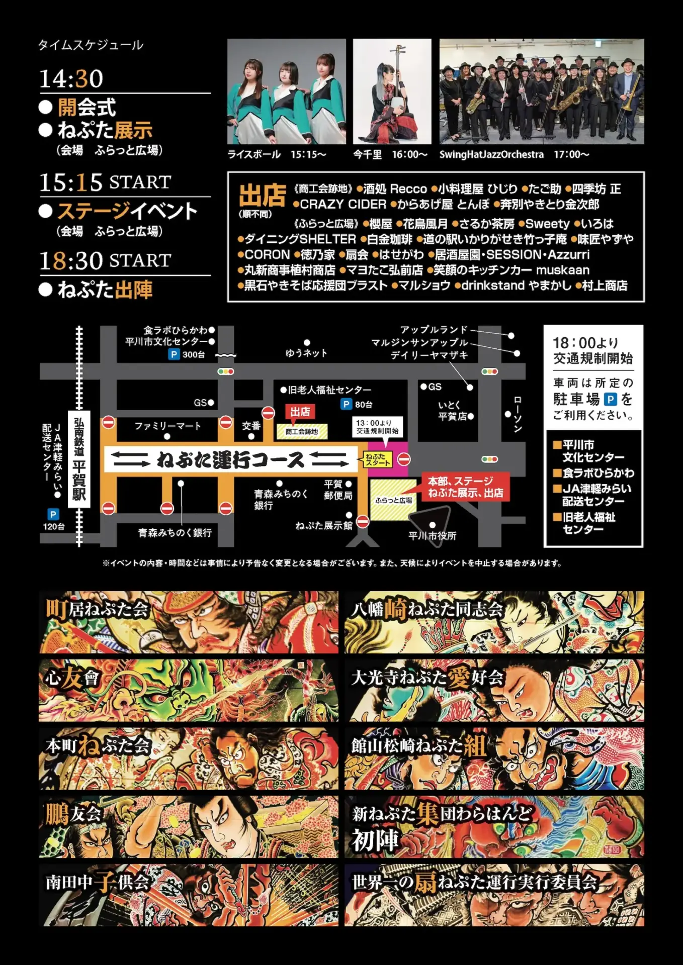 規制範囲:ねぷた運行コース周辺(下図・マップ参照)