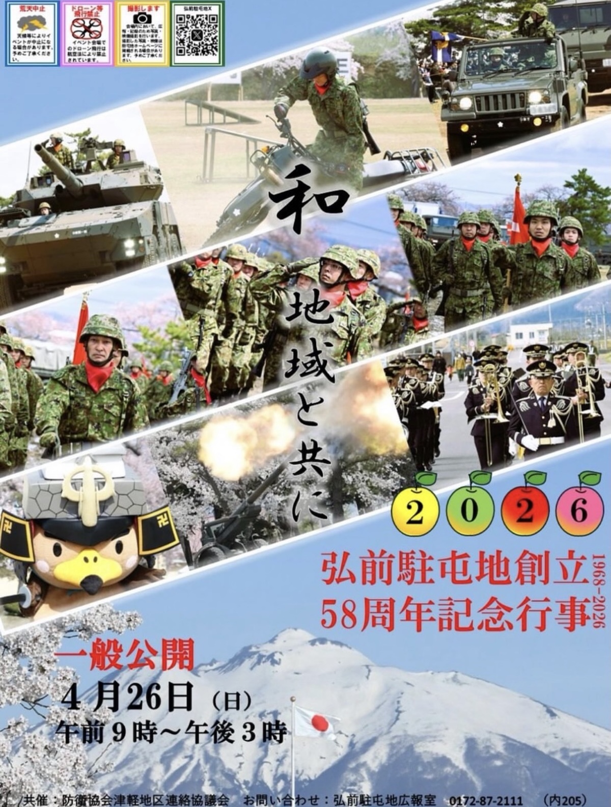 お問い合わせは、陸上自衛隊 弘前駐屯地(0172-87-2111)です。
