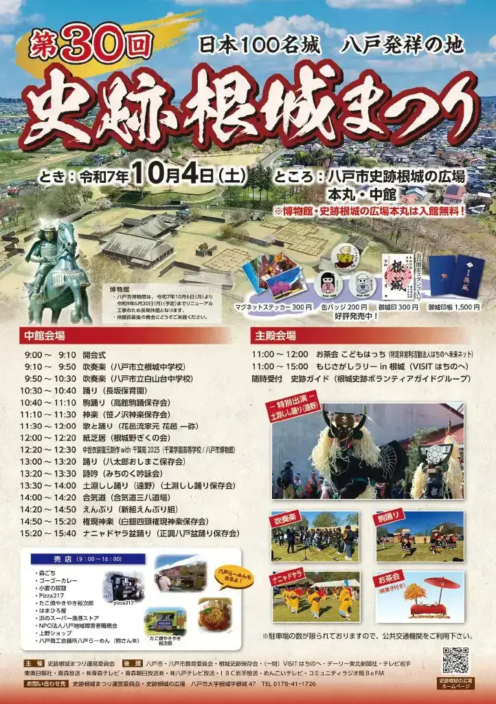 青森県八戸市の史跡根城の広場を会場に、「第30回 史跡根城まつり」 が、2025年10月4日(土)に開催されます。