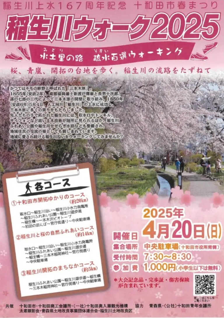 青森県十和田市、中心部から稲生川までを桜の咲く気持ちの良い季節に歩くウォーキングイベント「稲生川ウォーク」。