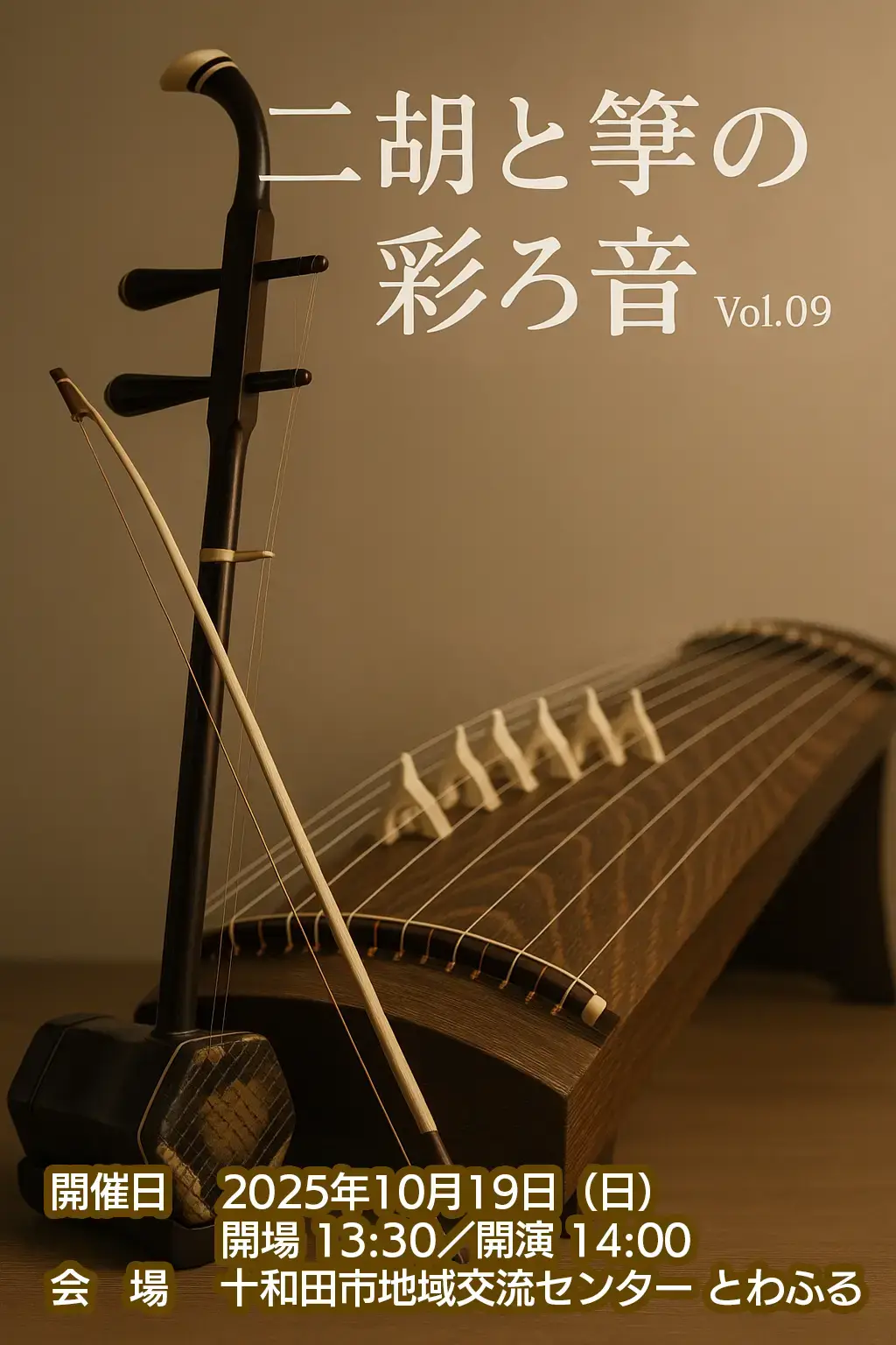 青森県十和田市の地域交流センター「とわふる」を会場に、二胡と箏によるコンサート「彩ろ音(いろね)Vol.09」が開催されます。