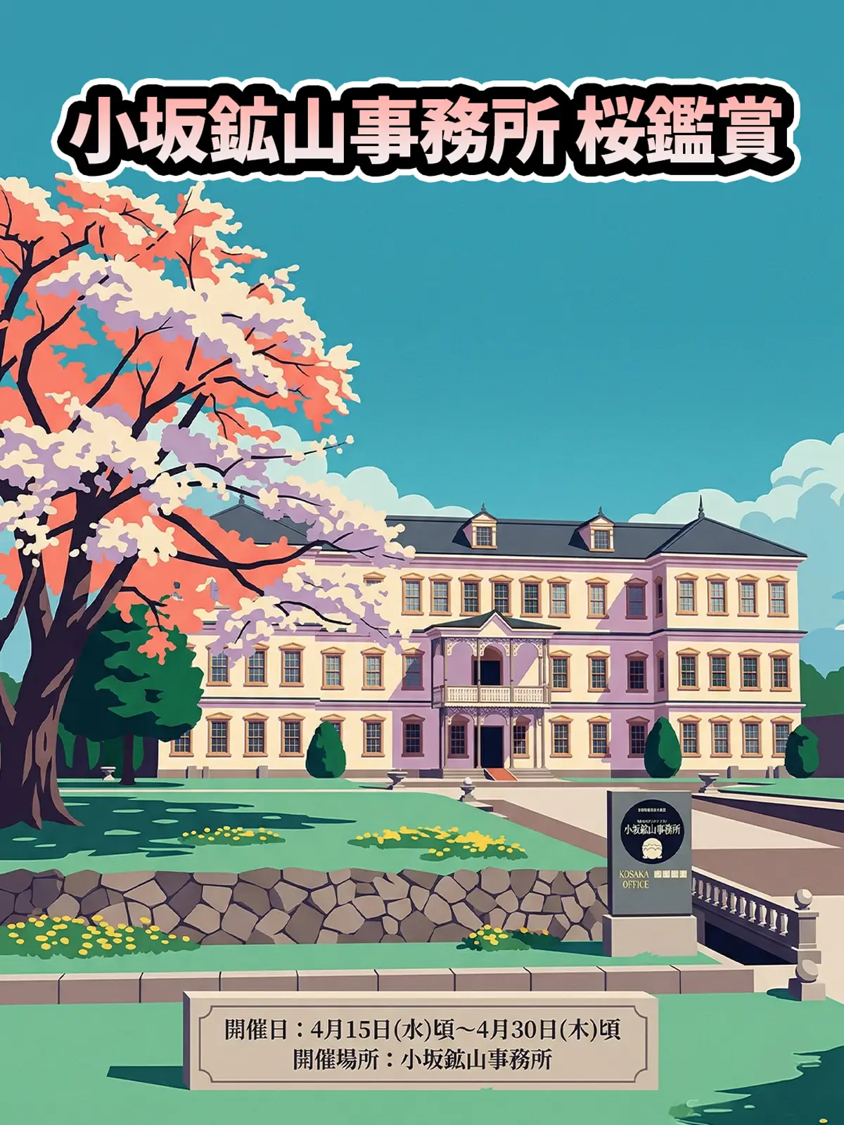 秋田県鹿角郡小坂町の「小坂鉱山事務所」では、2026年4月15日(水)ごろから4月30日(木)ごろまで、桜が見頃を迎える見込みです。国の重要文化財に指定されている格式ある洋館と、華やかに咲く桜が彩る春の風景は、思わず写真に残したくなる美しさです。明治時代の趣を感じるレトロな建物と桜が調和する景観は、小坂町の春を感じるスポットとしても人気を集めます。歴史と自然が重なり合うこの季節ならではの景色を楽しみに、春のおでかけ先として訪れてみてはいかがでしょうか。詳しい情報は公式サイトをご確認ください。