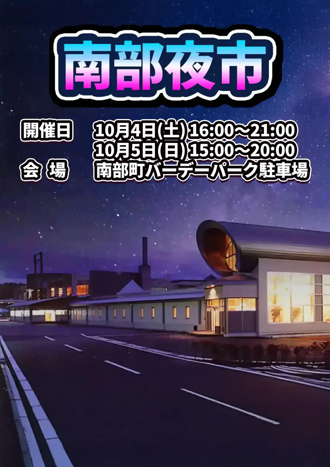 青森県南部町の温泉施設「バーデパーク」駐車場を会場に、ナイトマーケット 「南部夜市」 が開催されます。