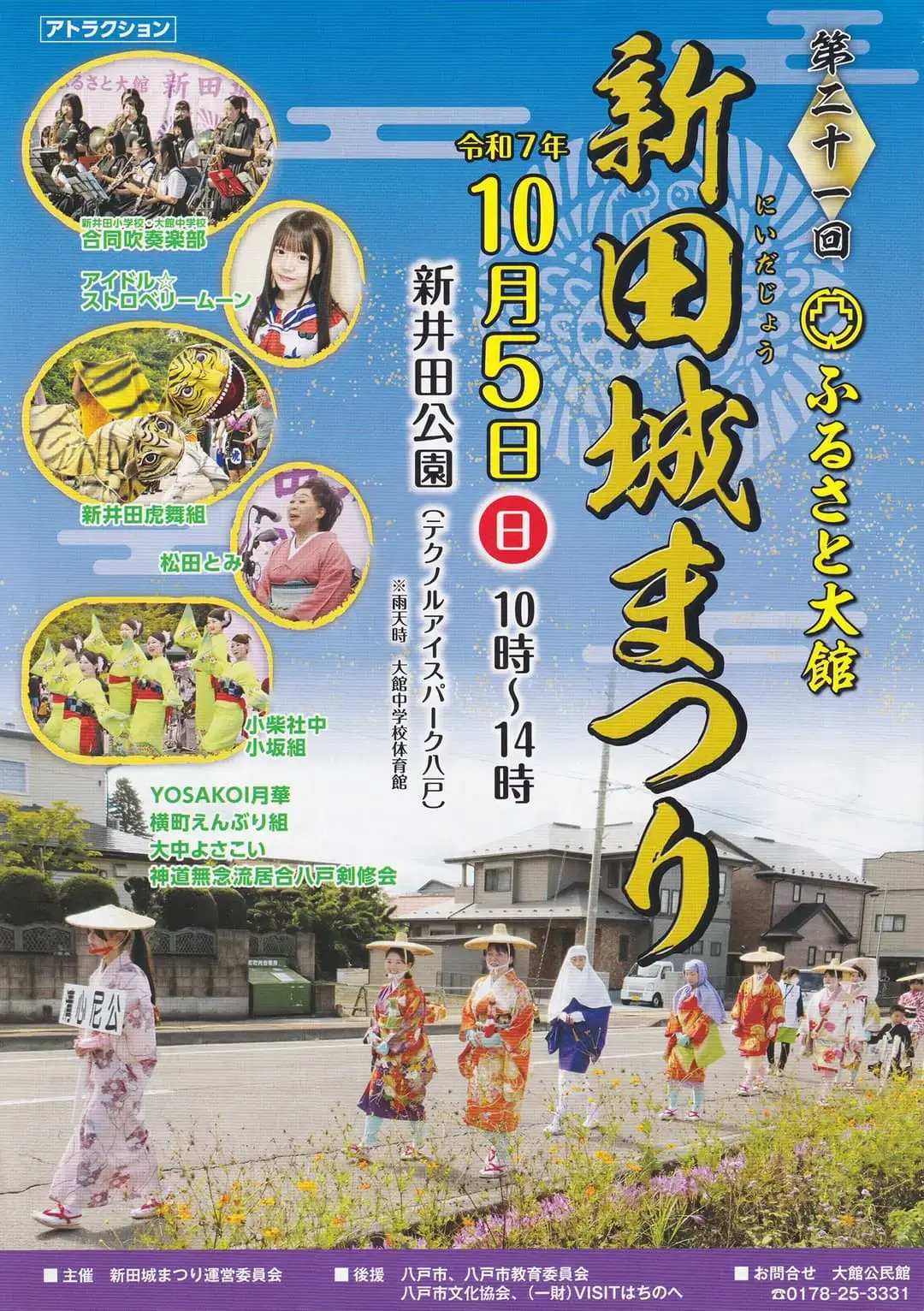 青森県八戸市の新井田公園(テクノルアイスパーク八戸)を会場に、2025年10月5日(日)10時から14時まで「第31回 新田城まつり」が開催されます。