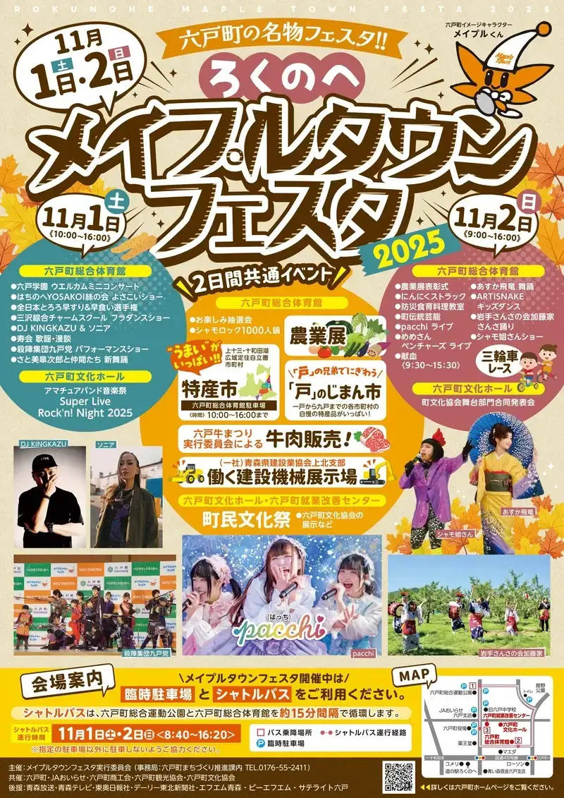 青森県六戸町の秋を彩る恒例イベント「ろくのへメイプルタウンフェスタ2025」が、2025年11月1日(土)・2日(日)の2日間にわたり開催されます。