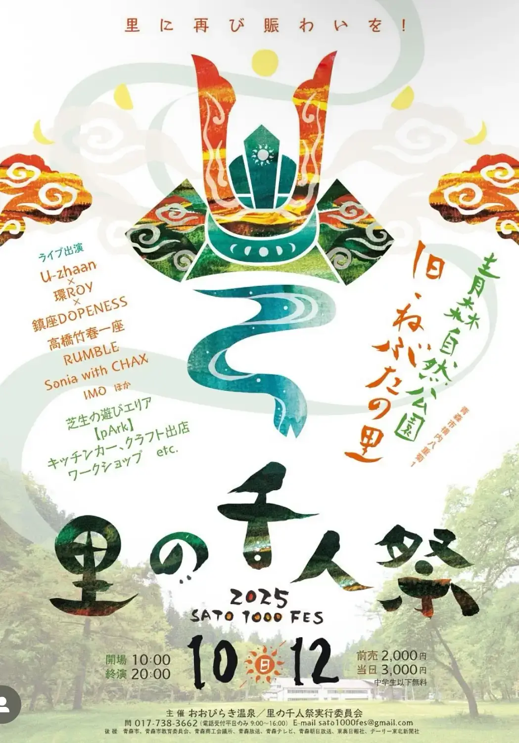 青森県青森市浪岡にある 青森自然公園 旧・ねぶたの里 にて、閉業以来初となる大規模野外フェス 「里の千人祭2025」 が開催されます。