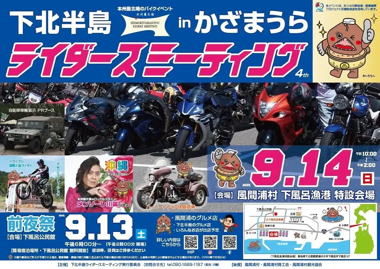 青森県風間浦村、下風呂漁港特設会場にて「第4回 下北半島ライダーズミーティング in かざまうら 2025」が開催されます。