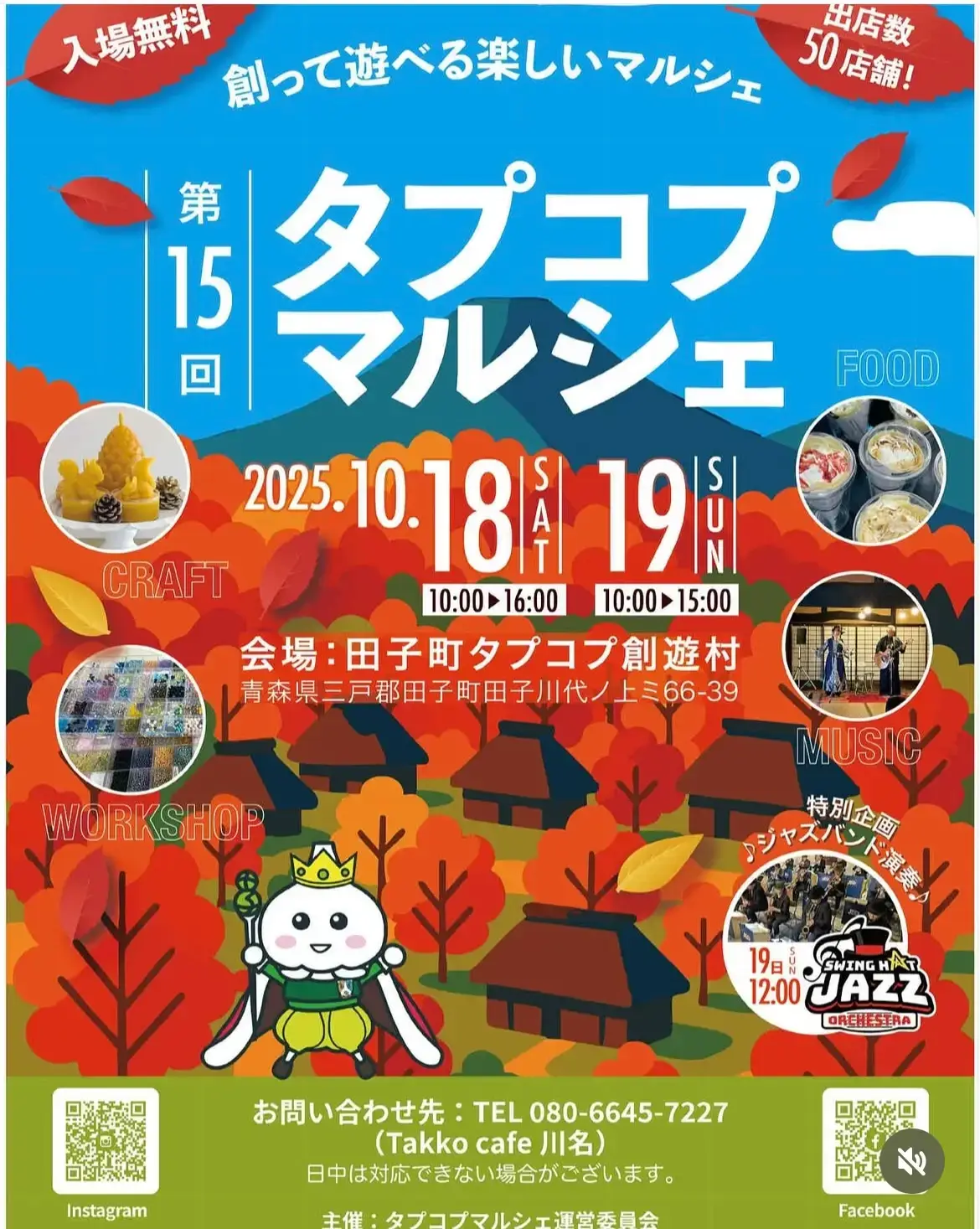 青森県三戸郡田子町のタプコプ創遊村を会場に「第15回タプコプマルシェ」が、2025年10月18日(土)・19日(日)の2日間開催されます。