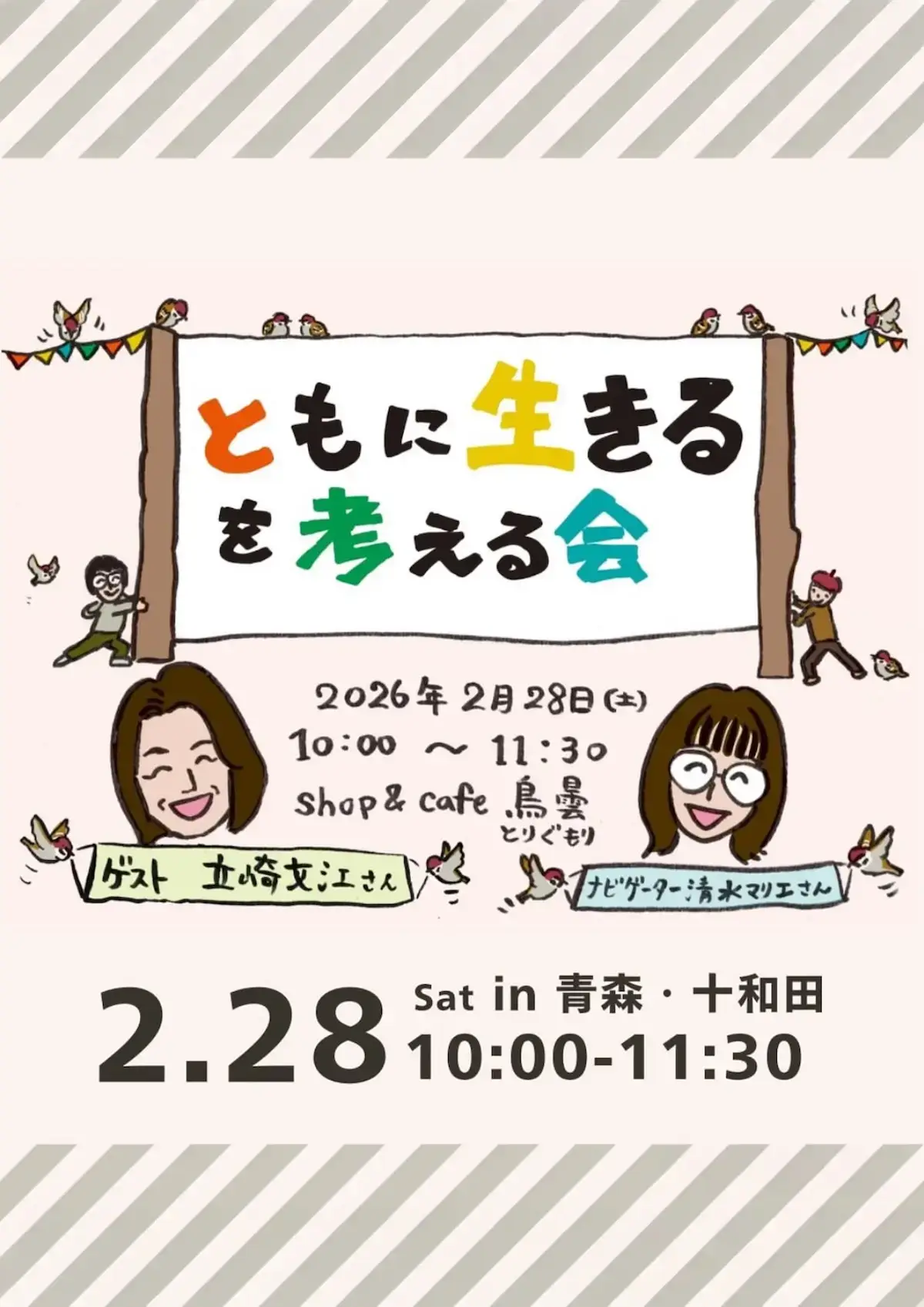 青森県十和田市焼山の「shop & cafe 鳥曇(とりぐもり)」にて、2026年最初のイベント「ともに生きるを考える会」が開催されます。