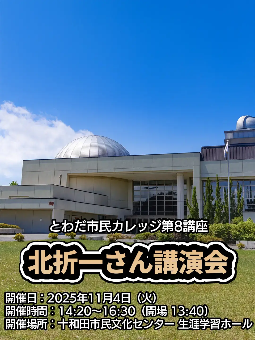 青森県十和田市では、令和7年度「とわだ市民カレッジ」第8講座として、元NHK「ためしてガッテン」専任ディレクターの北折一(きたおり はじめ)さんを講師に迎えた特別講演会を開催します。