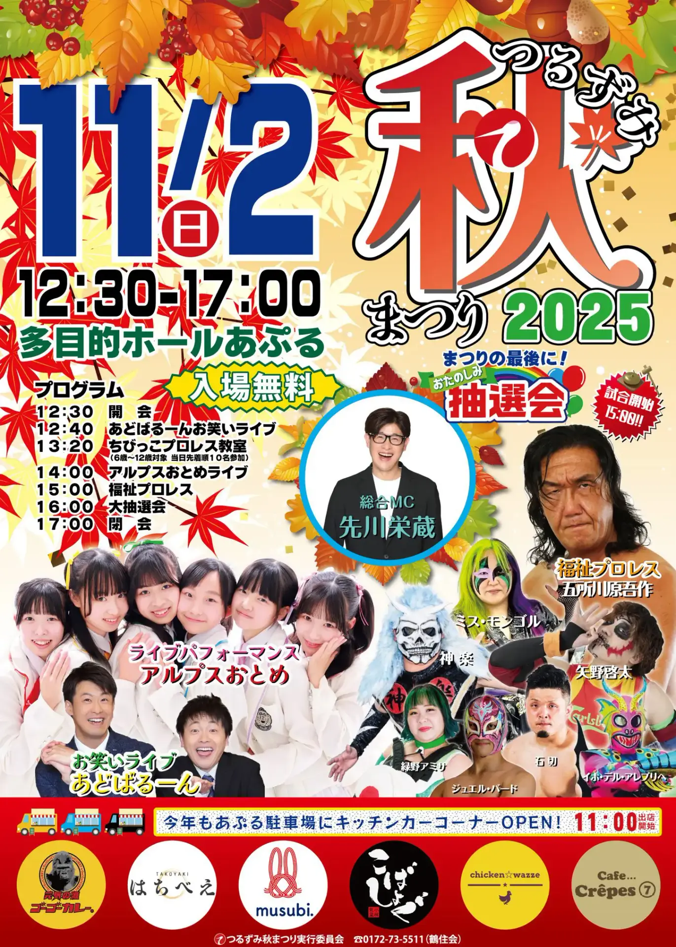 青森県北津軽郡板柳町の「多目的ホールあぷる」で、地域の恒例イベント「つるずみ秋まつり2025」が開催されます。