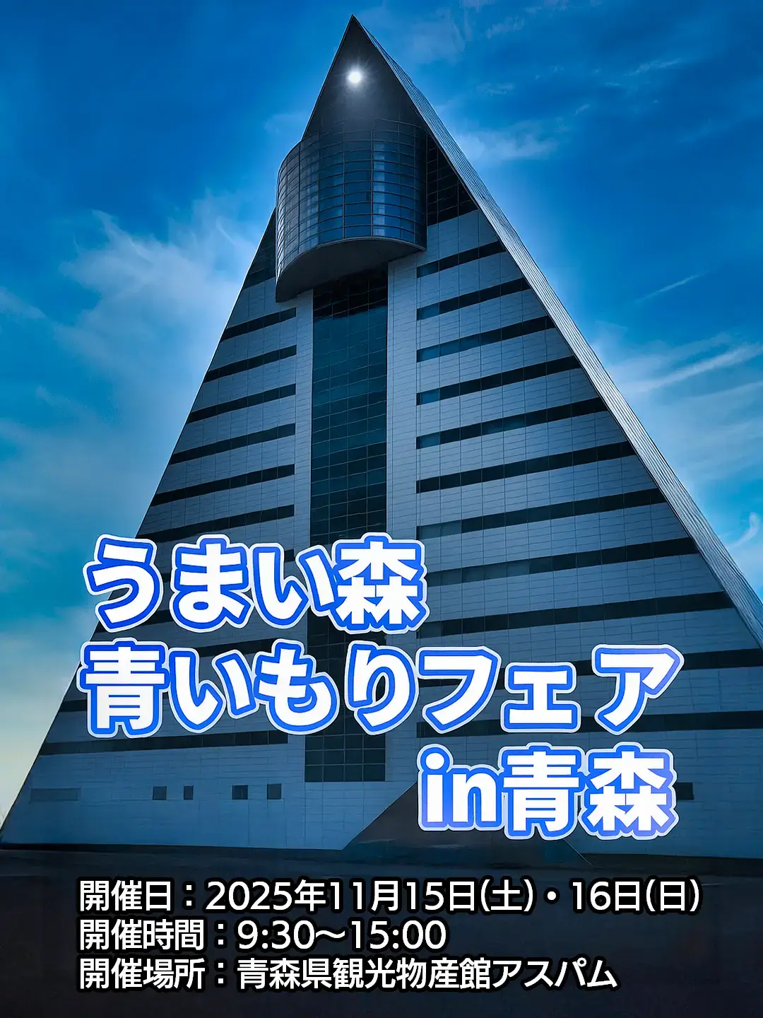 青森県青森市の県観光物産館アスパムを会場に、2025年11月15日(土)・16日(日)の2日間、「うまい森 青いもりフェア in 青森」が開催されます(主催:東奥日報社、共催:県観光国際交流機構)。県内21市町村から29ブースが集まり、青森の“うまいもの”が勢ぞろいする人気イベントです。