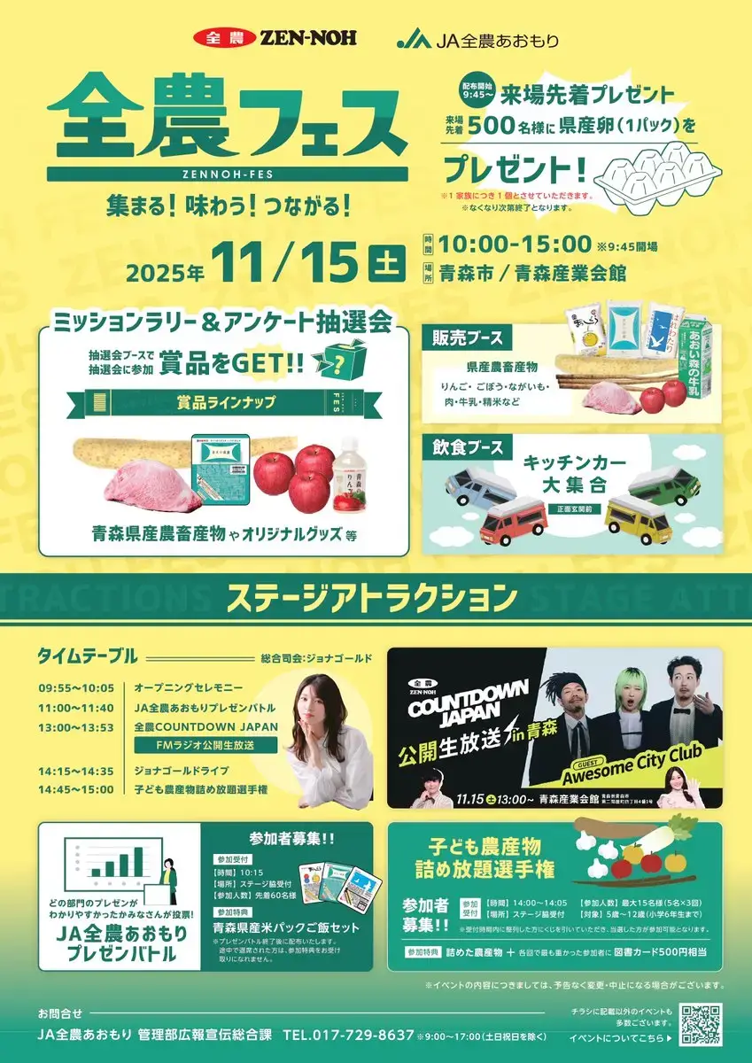 青森の「食」と「農」の魅力を家族みんなで楽しめる特別イベント「全農フェス2025(ZENNOH FES)」が、